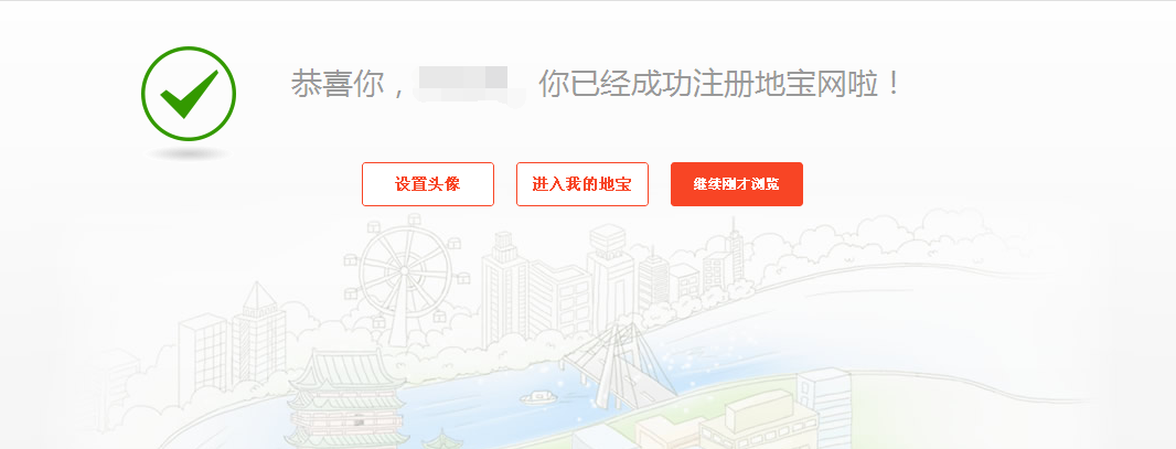 恭喜你,你已经成功注册地宝网啦!接下来可以去设置头像,或是浏览网页。