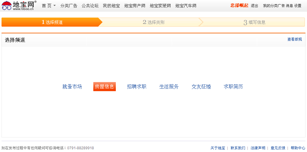 根据提示进入发布信息的第二步,为你将要发布的信息选择合适的类别。例如你有房出租,那么点击租房。