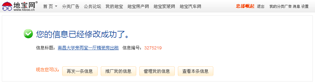 内容填写完毕后,点击”同意地宝网发布版规,并确定提交“按钮后,您的信息即发布成功了。