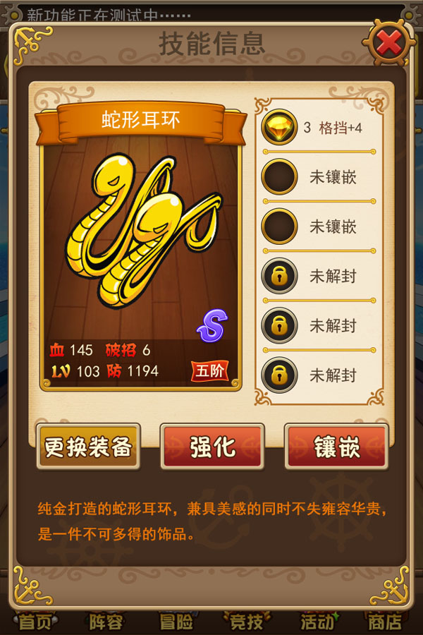 【装备获得】:装备可通过冒险关卡、开宝箱及充值活动获得。