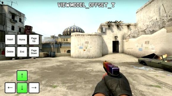 方向键↑和↓控制手臂的前和后。(对应参数:viewmodel_offset_Y)