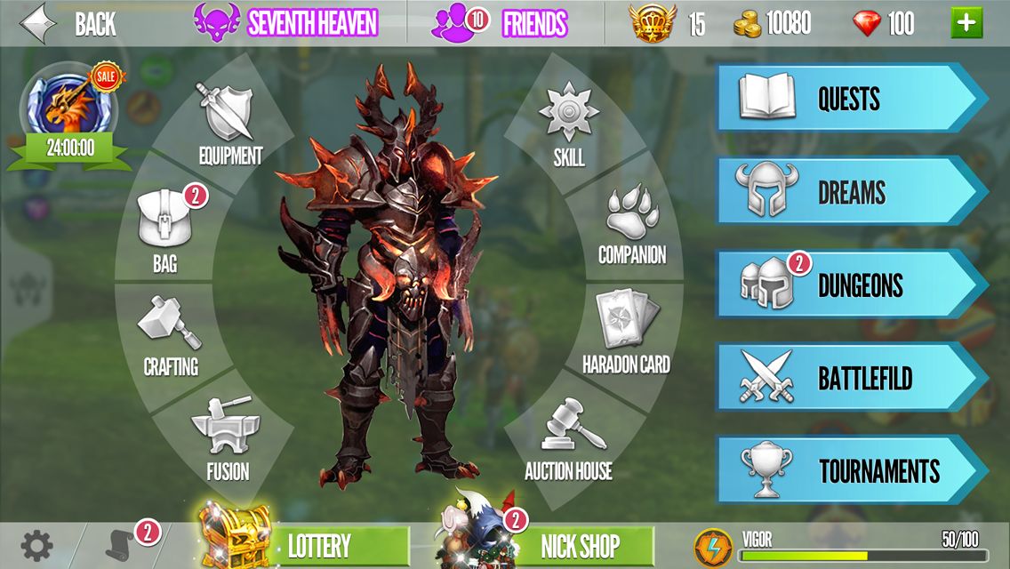 基本上沿用了以往的操作方式,左下边可以角色移动,右下角是技能栏。而划动屏幕右侧则可以控制视角。攻击、跳跃与技能都在屏幕右下角的轮盘中,使用起来还是很顺手的。至于游戏的任务、装备等界面,则藏在屏幕左右两侧的侧拉菜单中,这样可以最大限度的显示游戏画面,并且整个画面也看起来非常的简洁。