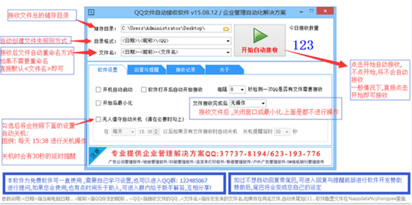 qq文件自动接收软件可以对用户的QQ进行实时的监测,发现有好友向你的QQ发送文件,即可自动接收并保存到你预设的存储位置,而且文件接收时不影响正常的鼠标、键盘操作,让你在忙碌时,又不会错过好友给你发送的即时文件。