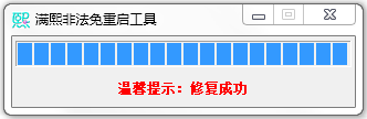 满熙非法免重启工具是一款小巧绿色的游戏工具。该工具可以快速进行游戏修复,防止游戏因非法模块重启而出现问题,可支持LOL、CD、DNF等游戏,有需要的朋友可以下载。