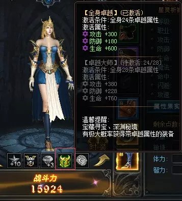 2全身强化等级、卓越属性、宝石、符文达到一定要求时可激活额外属性加成,把鼠标放在图标说明