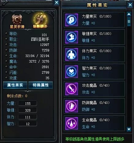 3右边的属性果实分为果实和魔晶,魔晶和果实均有最大使用次数,如25/180表示使用了25个果实,最大使用次数180。
