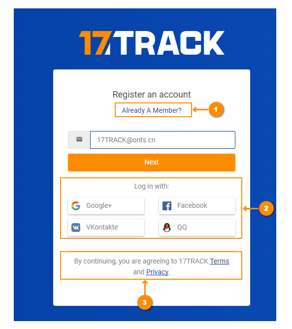 如果您已经是17TRACK的注册用户,请在这里输入您的账号密码即可登录