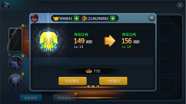 玩家也可以通过一键强化功能快速强化装备。