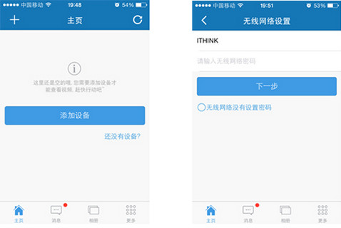 将电源线与摄像机连接,并接通电源,然后,我们打开手机手立视APP,添加摄像机,点击屏幕中间的“添加设备”