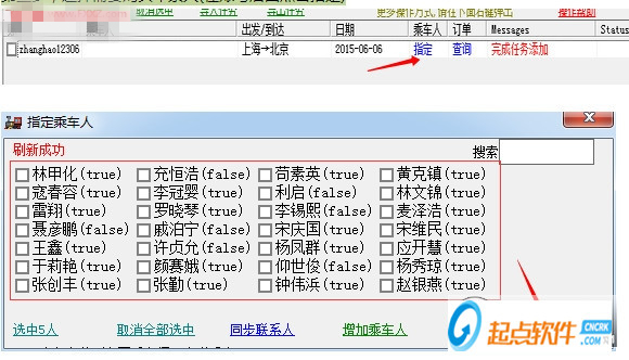 第三步,选择需要购买车票人(在账号后面点击指定)