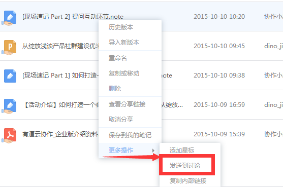 一、如何针对特定文件发起讨论1.发送到讨论: