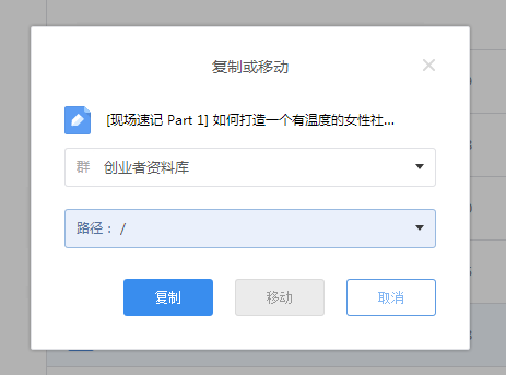1.文件的复制或移动,可直接实现文件在群与群间的共享。