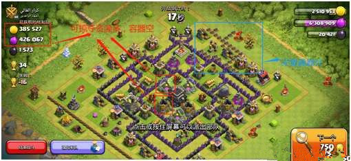 ②观察该目标的容器是否很空,因为如果容器空,资源又多,说明资源大多存在采集器中,那主人还没得收集。圣水瓶空的话透明,里面一点紫色都没有为最空;储钱罐空的类似。如容器空,下一步。反之下个对手。