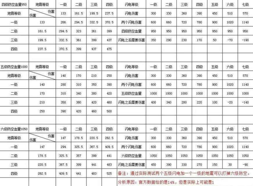这里顺便提一个关于7、8本龙流的问题,如果8本有5级闪电,那么可以带两个闪电1个地震搞掉一个6级防空,另一个带狂暴,法术申请极速或毒药;如果是4级闪电,则需带3个闪电,详细的在表格中,大家可以参考(表格非原创,也无侵权意味):