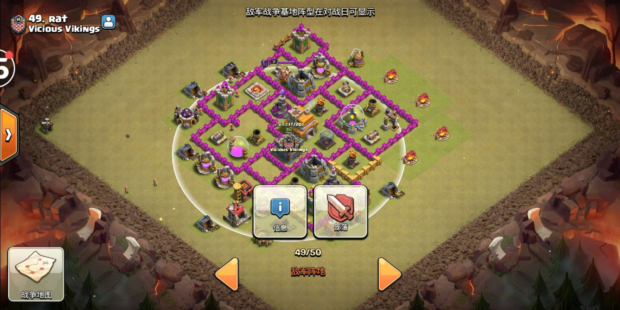 ①进攻前先侦查对方城堡范围,然后以地图上的建筑为参照,因为实际进攻时是看不到这个圈的,所以心里需要事先对部落城堡的范围有个底。