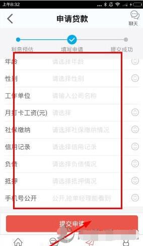 3、在填写贷款申请界面,点击贷款信息点击提交申请,之后就等待审核的哟~
