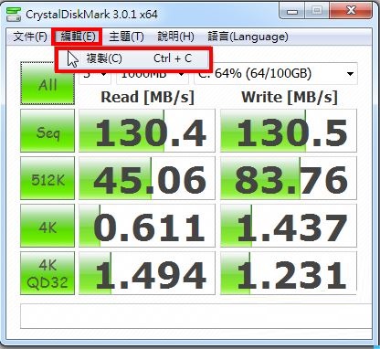 4K QD32:针对NCQ、AHCI模式做随机做读、写检测(4K位元组,伫列深度为32)