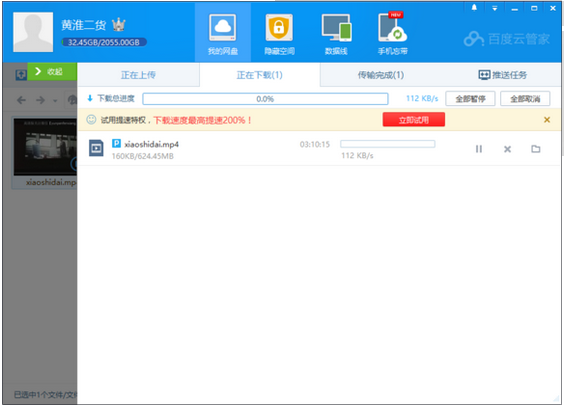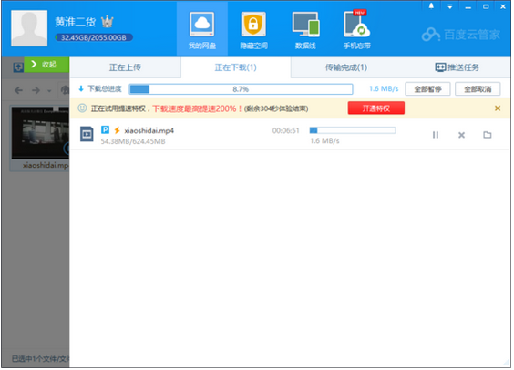 经常使用百度网盘客户端的人应该都知道,随着百度云用户越来越多,为了推广VIP会员盈利,开始在客户端程序里加入了限速策略,而这款百度云管家限速破解补丁可以破解客户端下载速度限制,让普通用户也可以无限使用提速特权,而且用户可无限次试用,永远不会出现非会员限速的情况,只要的你的网速够好想下多快都ok。