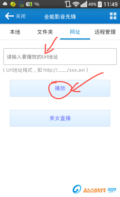 进入之后可以看到这是一个可以直接输入播放视频连接地址的功能。将你的视频链接地址输入到这里不需要下载就可以直接播放了,这个功能以前有些软件都有过,不算是新功能了。