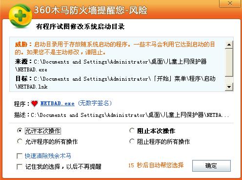 4、开始干扰,软件会在启动菜单里产生一个快捷方式,安装了360卫士的电脑会出现如下对话框: