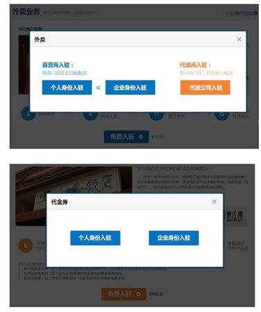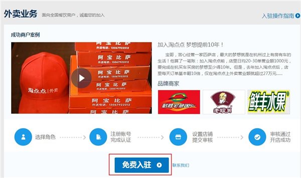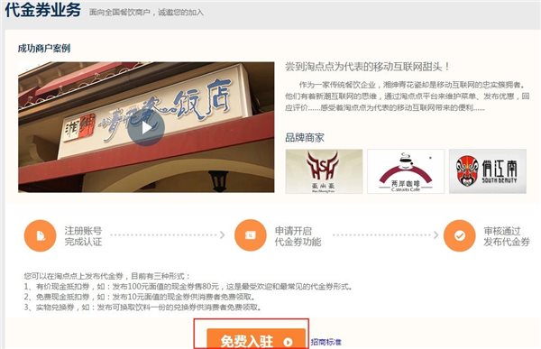 *进入zhaoshang.dd.taobao.com,选择外卖业务或者代金券业务免费入驻;