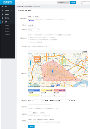 1、配送范围可以最多设置三个,设置时先要把地图放到最大,然后再去划定范围,避免划定区域过大;