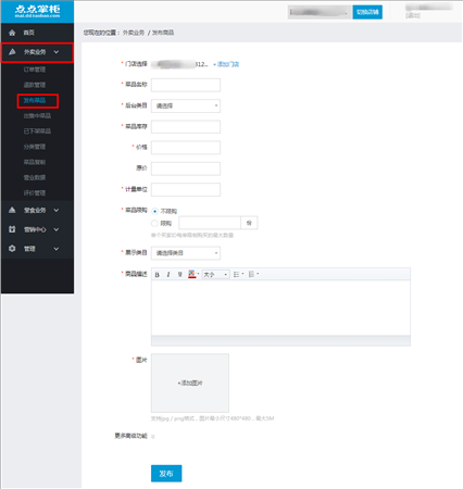 4:发布4个商品,不要只上传4个哦,可以把开店要用的菜品都上传哦,但是最少要4个