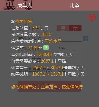 2、软件将提供标准比例对比,根据用户输入比例,判定用户是否偏胖或偏瘦。