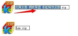 首先在自己的电脑中找到下载好的皮肤压缩包,将它的名字修改为非中文名字,即字母与数字符号组合。这里以光辉女郎的钢铁军团皮肤为例,将原本的压缩包名称改为Lux.zip