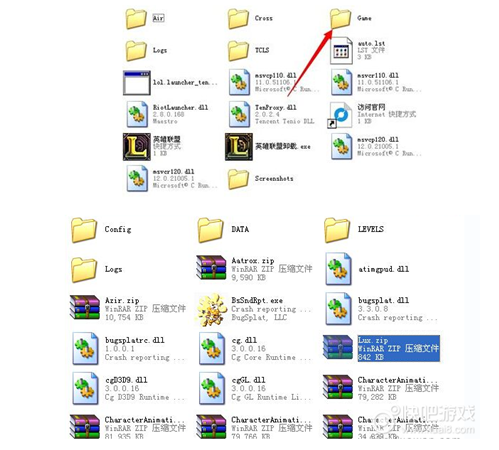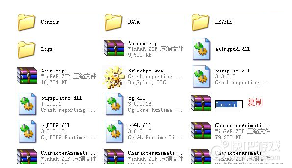 然后将整个压缩包复制到英雄联盟目录下的Game文件夹中