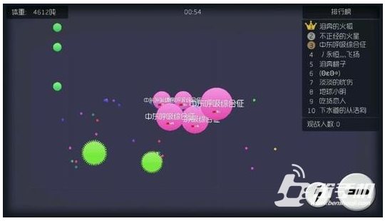 补充个技巧 在我旁边的那个绿色带尖刺的球是个相当于障碍物等我东西 但是可以利用他进行躲避 比他大的球碰到它会分裂出很多非常小的球 而比它小的球可以躲进去 所以可以利用他来躲避大球的攻击