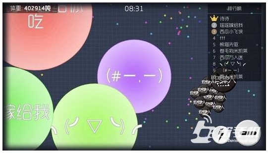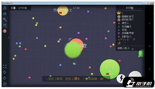 攻略四:围攻,当你体积足够大时,跑得也慢,很难吃到小球,这时可以和别人联合围攻一个球,注意自己不要被比你更大的球吃掉哦。