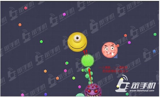 以为逃脱对我们来说是不利的,所以我们在逃亡的过程中不仅仅要拉开对方的距离,同时还要吸收沿途的小球来壮大自身拉近对方与己方体积差距,如此一来,对方即便体积比己方大,但是分身比不过自己,他们注定要在后头吃灰;很多玩家并不知道游戏中的绿色尖刺是可以移动的,移动的方法就是靠我们喷吐出来的精华来移动,运用的好我们就可以使用尖刺来对付体积比我们大的球。