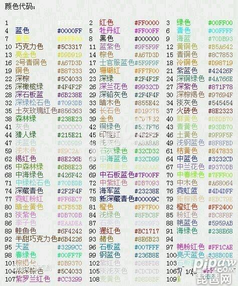 2.然后对照代码表,将代码表中的#去掉,用[ ]名字颜色代码框起来。注意是英文的括号 [ ],中文的括号【】是不行的。