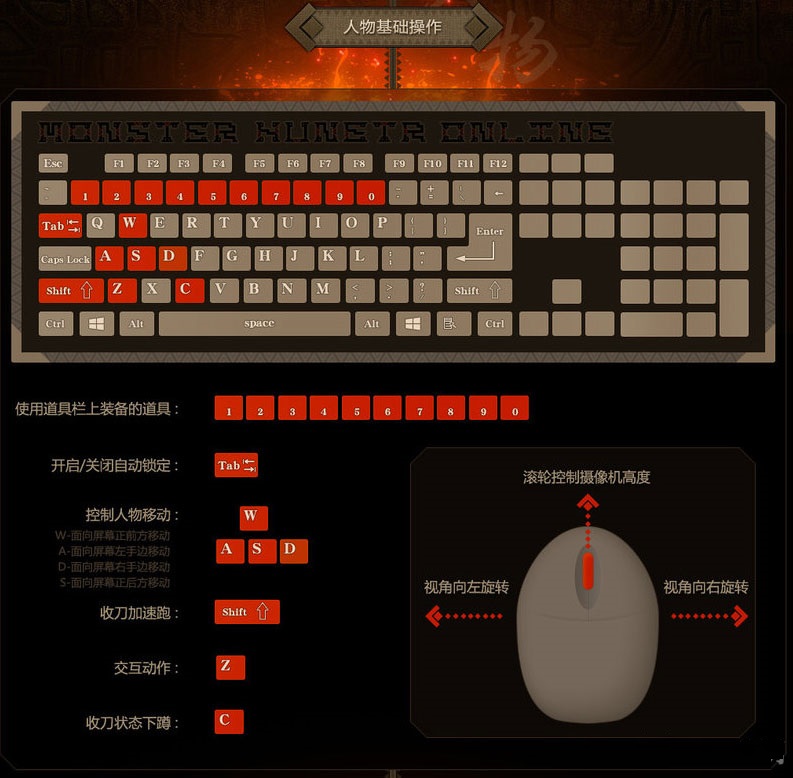 移动操作是《怪物猎人OL》中最基本的操作之一,通过键盘按键,猎人可以控制自己的角色在《怪物猎人OL》的世界中纵横驰骋。