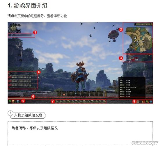1. 人物及组队情况栏:角色昵称、等级及组队情况