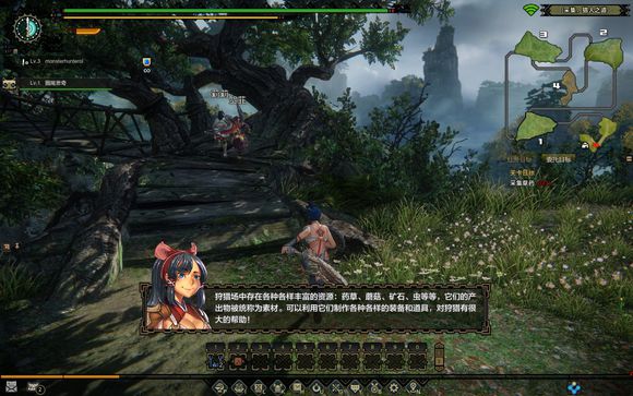 在猎场中存在着药草、蘑菇、矿石、虫类等各种素材资源,采集这些素材,可以用于制作各种各样的装备和道具。