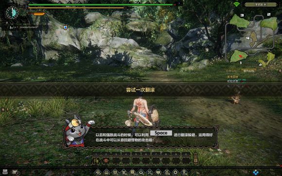 在与强敌战斗时,猎人可以按下空格键翻滚躲避,运用得当可以回避怪物的攻击。