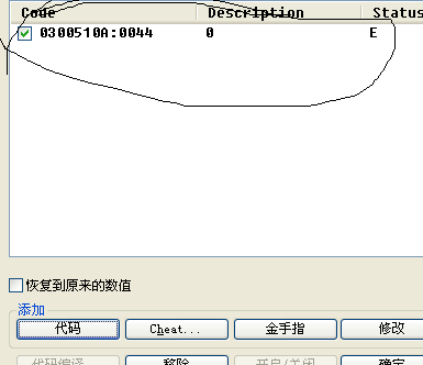 然后会到游戏操作页面点确定,这时先前买的东东就变成了金手指中的东东了.如下图
