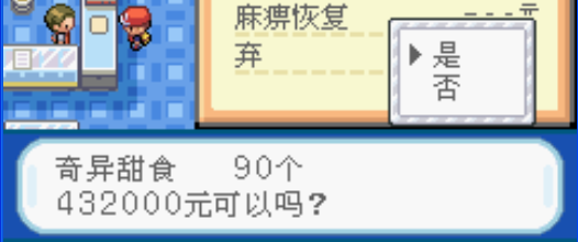 先到任何一间商店选商品选买任意物品99个(数量可以自己定,但一次最多只能买99个)按A, 问你确定与否不要按(如下图).