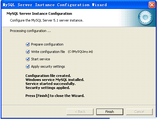 单击finsh按钮此时MySQL数据库安装成功,不过会出现如下界面对MySQL进行配置