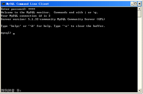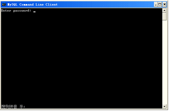 单击开始->所有程序->MySQL->MySQL service 5.1->MySQL Command line Client出现如下界面