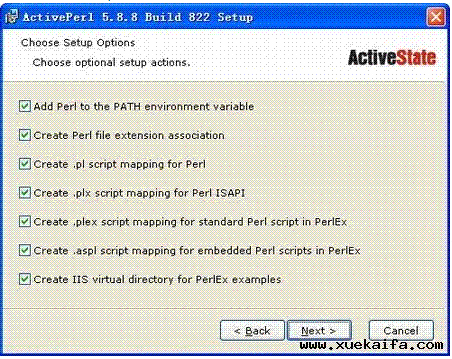 双击activeperl安装界面,一直点击next直至完成安装,activeperl的选项都是默认的选项,依照默认安装。如果只能选择前两项,后面几项是灰色不可选状态,请不要奇怪,认真核实你的系统是否真的安装了IIS