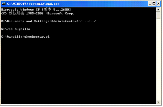在此命令行下安装bugzilla所需的perl模块,用checksetup.pl可以找到需要安装的perl模块,安装的方法如下.