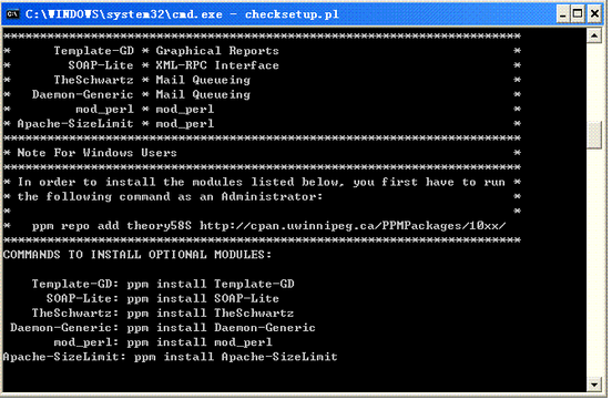 使用bugzilla自带的一个checksetup.pl来安装bugzilla所需的perl模块。如下图所示