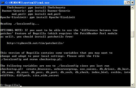 若安装成功将会在bugzilla目录下生成一个localconfig文件。
