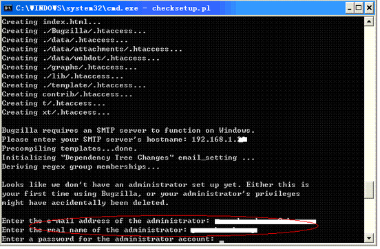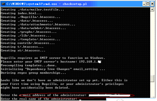 第二次运行checksetup.pl模块时,有些模块仍然没法安装,没关系,因为里面有些模块并不会影响到bugzilla的安装