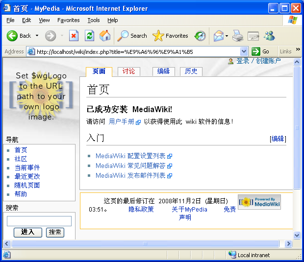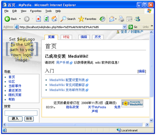 注:可以使用默认logo图片同目录下的mediawiki.png替代。