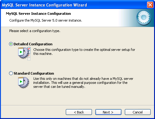 这里有一些选项以对MySQL Server做一些优化配置。当然也可以使用标准的设置(Standard Configuration)。