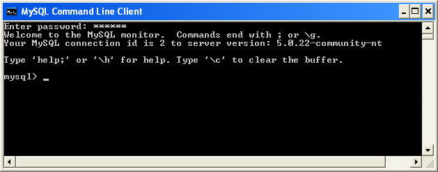 点击开始-〉所有程序-〉MySQL-〉MySQL Server 5.0-〉MySQL Command Line Client,